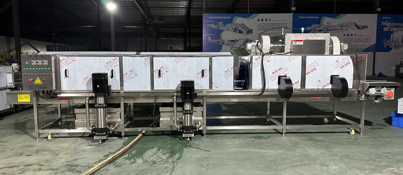 3、喷淋系统:清洗喷嘴全覆盖安装结构,可调水温、喷头可360°球面调节,无死角清洗。每一个喷嘴及管道都可以达到无工具拆装,方便操作工人每班次清理维护。